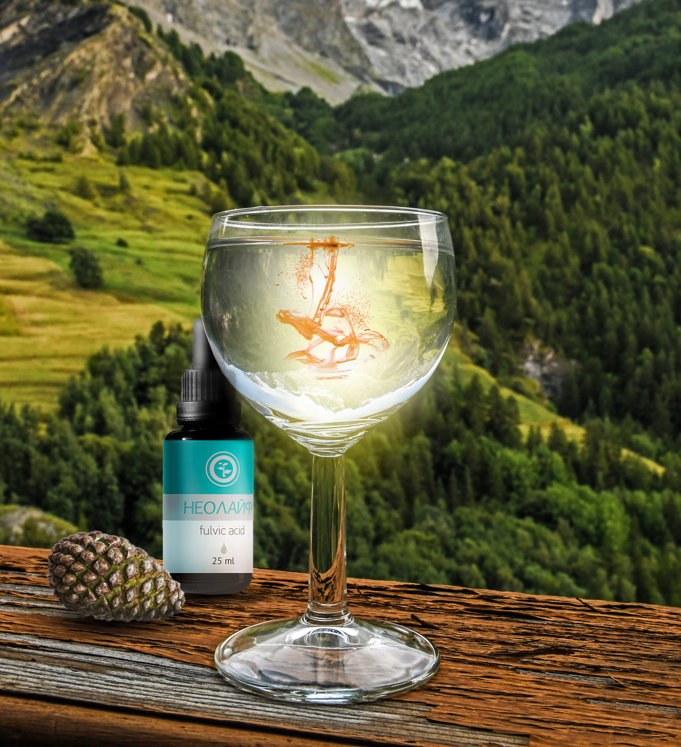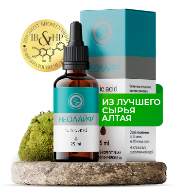 Концентрат напитка «НЕОЛАЙФ» – комплекс гуминовых, фульвовых и гиматомелановых веществ, извлеченных из растительных ископаемых путем оригинальной многоступенчатой экстракции, позволяющий выделить полный комплекс биологически активных веществ.