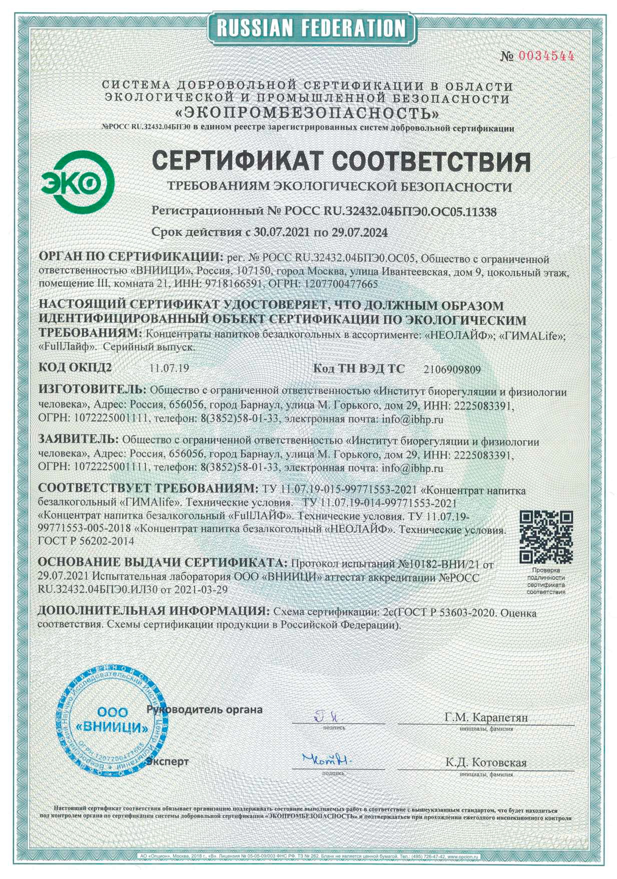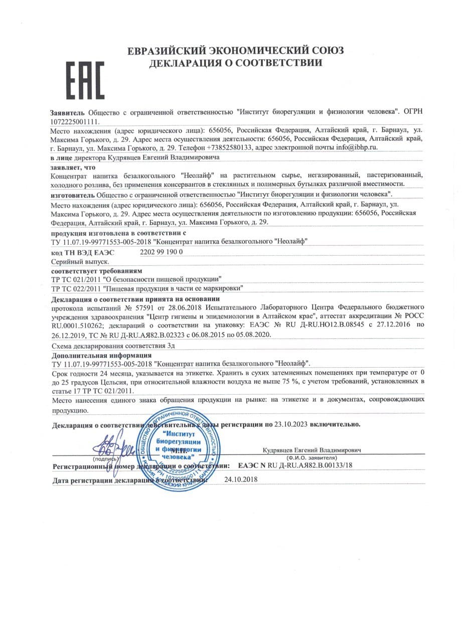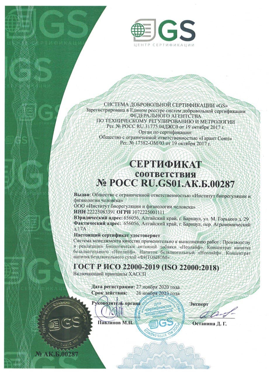 Все продукты ИБФЧ прошли обязательную сертификацию. Протестированы ведущими учеными Сибирского отделения Российской академии наук (СО РАН).
